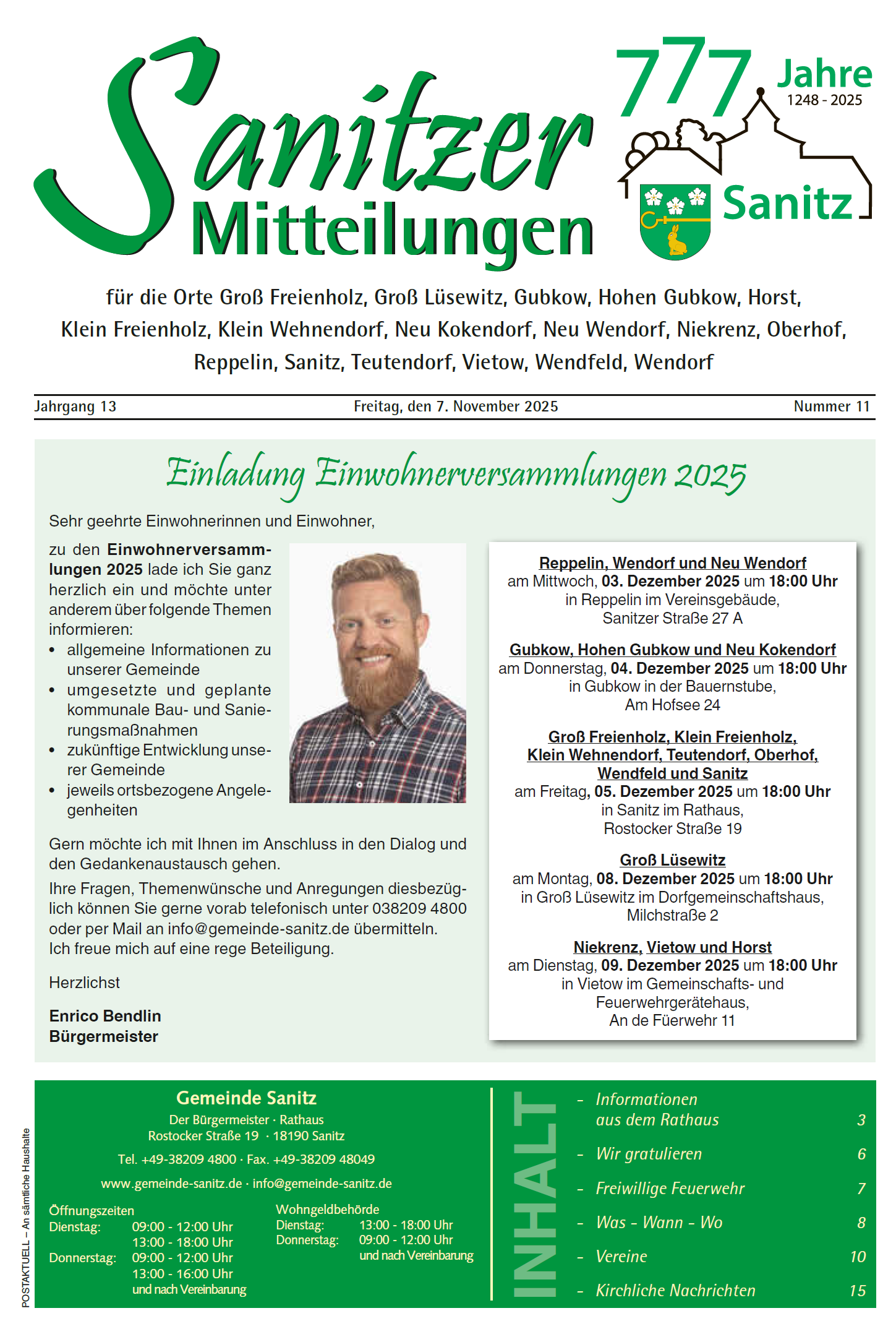 BEKANNTMACHUNGS-BLATT Nichts mehr verpassen! Auf dieser Seite finden Sie das Bekanntmachungsblatt der Gemeinde Sanitz. Aktuelle Sanitzer Mitteilungen Monat November 2025 Mitteilungen Monat November Mitteilungen Monat Oktober Mitteilungen Monat September Mitteilungen Monat August Mitteilungen Monat Juli Mitteilungen Monat Juni Mitteilungen Monat Mai Mitteilungen Monat April Mitteilungen Monat März Mitteilungen Monat Februar Mitteilungen Monat Januar Sanitzer Mitteilungen 2024 Mitteilungen Monat Dezember Mitteilungen Monat November Mitteilungen Monat Oktober Mitteilungen Monat September Mitteilungen Monat August Mitteilungen Monat Juli Mitteilungen Monat Juni Mitteilungen Monat Mai Mitteilungen Monat April Mitteilungen Monat März Mitteilungen Monat Februar Mitteilungen Monat Januar Sanitzer Mitteilungen 2023 Mitteilungen Monat Dezember Mitteilungen Monat November Mitteilungen Monat Oktober Mitteilungen Monat September Mitteilungen Monat August Mitteilungen Monat Juli Mitteilungen Monat Juni Mitteilungen Monat Mai Mitteilungen Monat April Mitteilungen Monat März Mitteilungen Monat Februar Mitteilungen Monat Januar Sie suchen nach älteren Beiträgen? Bitte wenden Sie sich hierzu an Daniela Fehlhaber unter 038209 – 48023 oder daniela.fehlhaber@gemeinde-sanitz.de Teilen