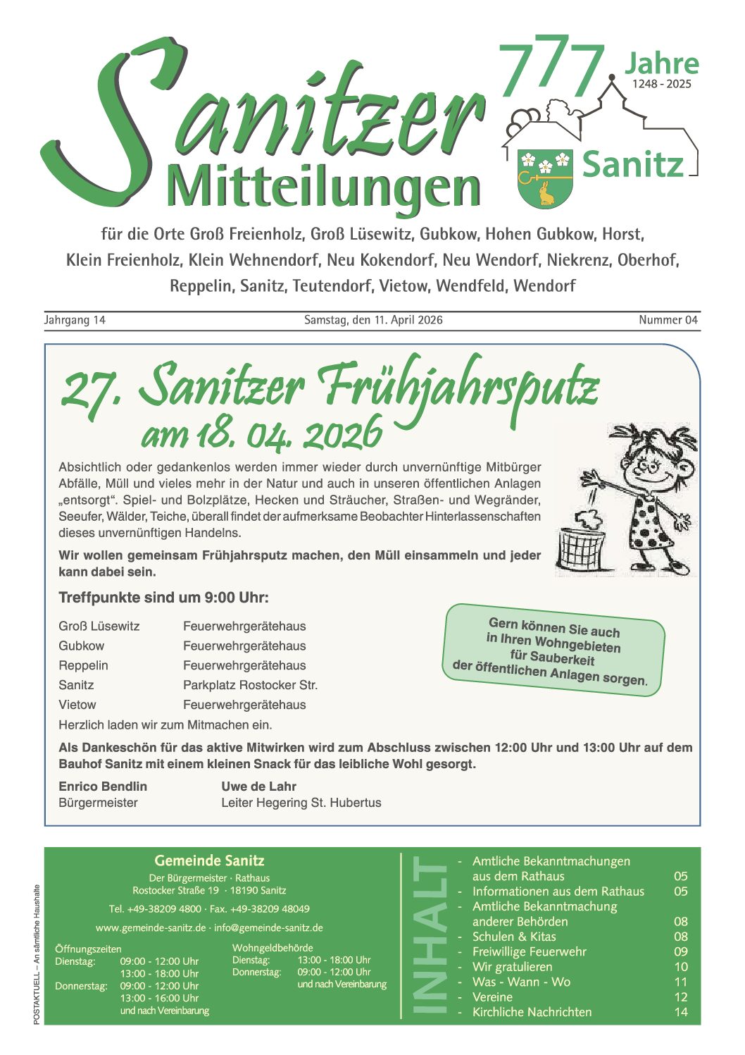Sanitzer Mitteilungen 2026
