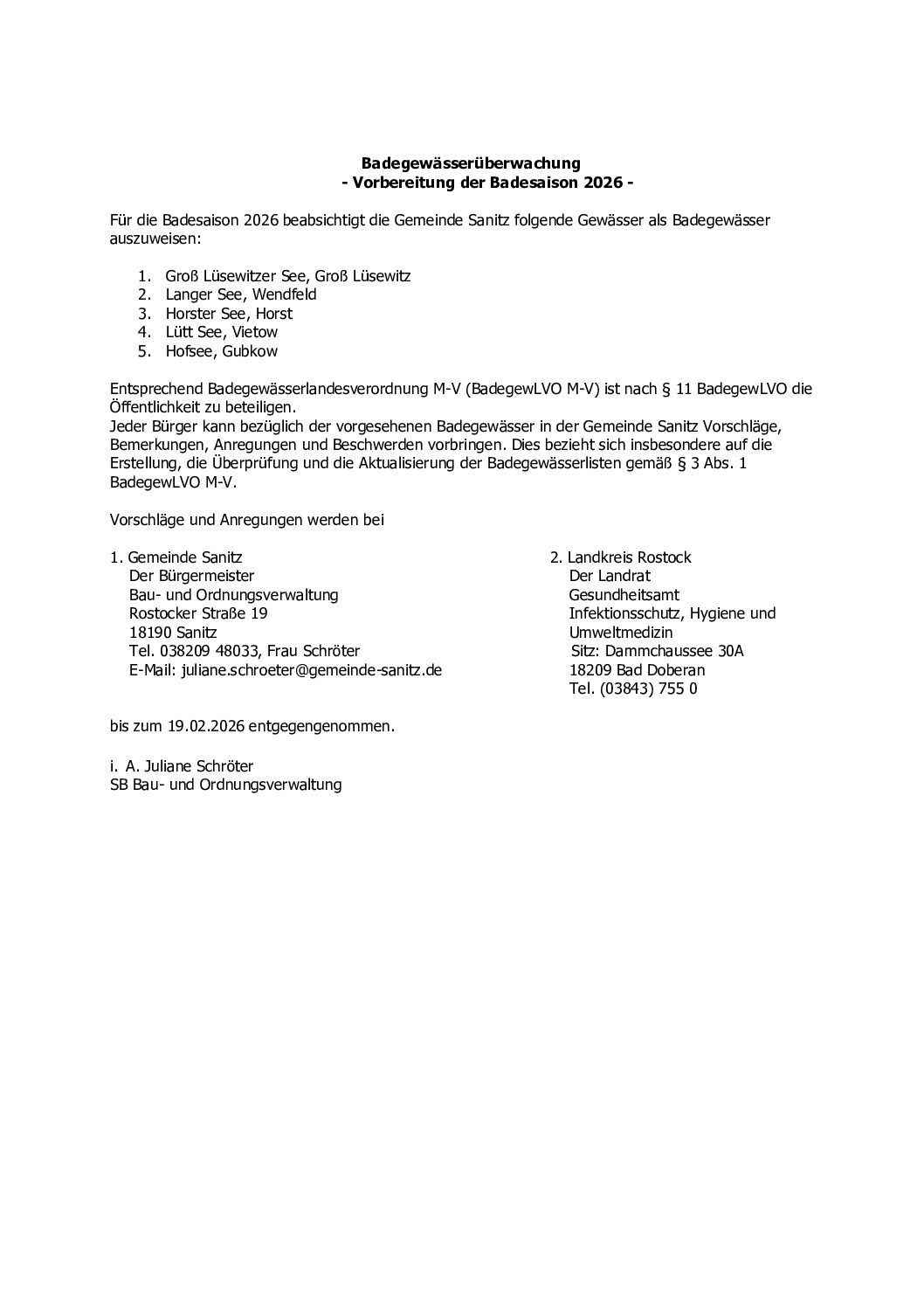 AKTUELLES AUS SANITZ UND UMGEBUNG