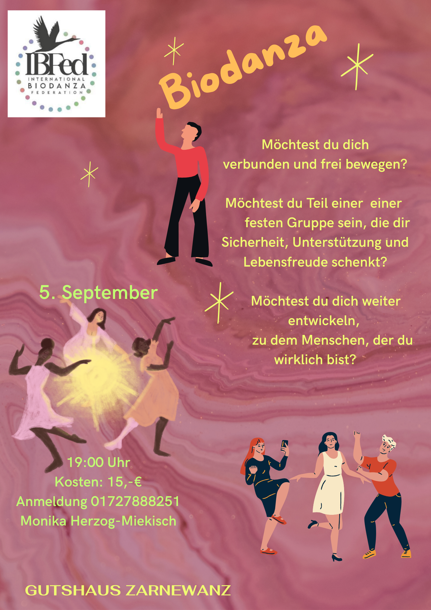 Biodanza ist zum einen ein freier Tanz, mit Musik aus allen Genres und Bewegungsimpulsen. Zum anderen ist mit BIO das Leben gemeint. Unsere Gefühle, die wir heilen, wieder fühlen lernen können und ausdrücken. Unsere Gedanken, die es gilt in eine für uns nährende Richtung zu lenken.