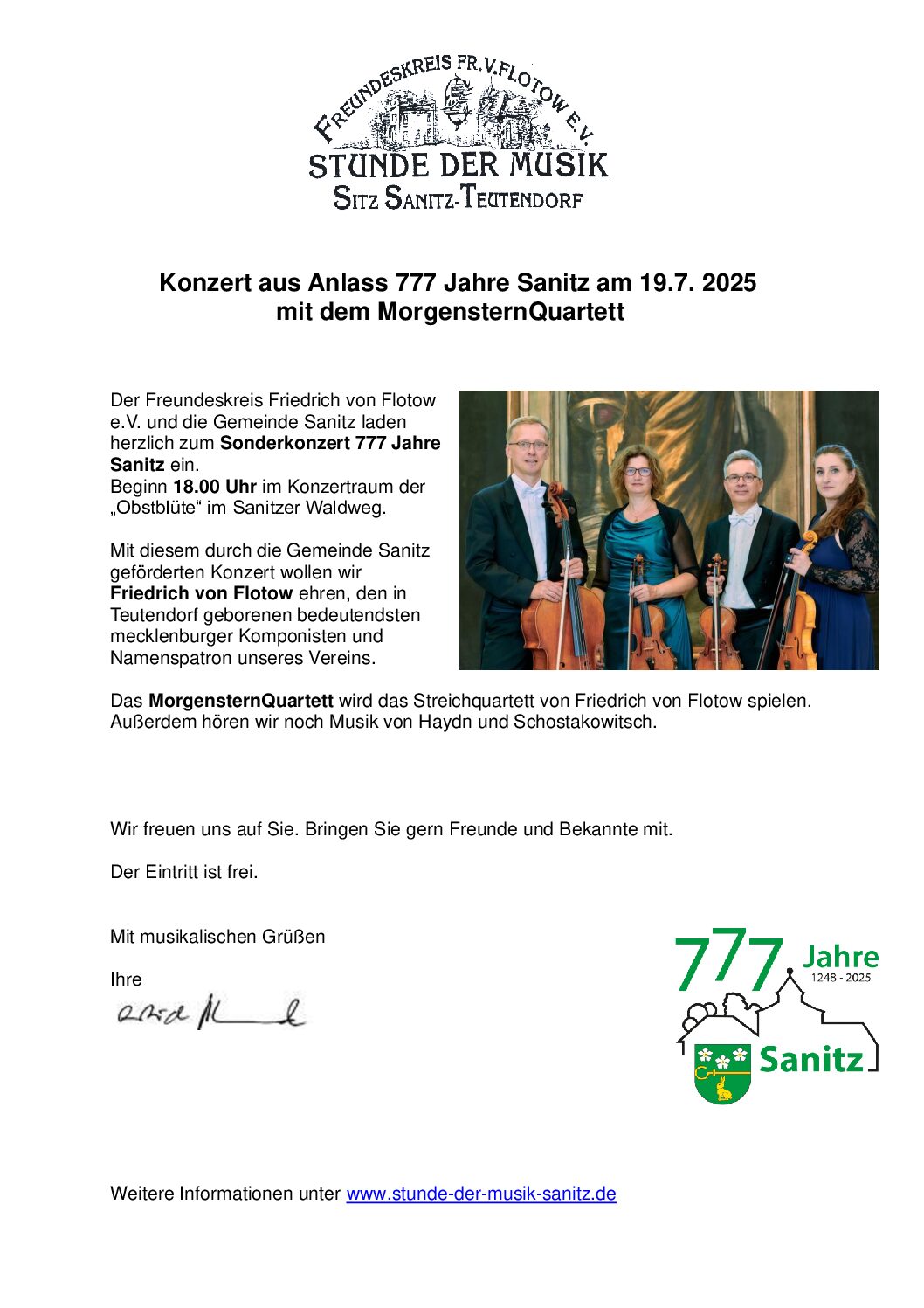 Nach dem fulminanten Start in das Neue Jahr am 1.1.25 begrüßt der Freundeskreis Friedrich von Flotow e.V nun am Sonnabend, den 15.2.2025, 18.00 Uhr in unserem Konzertsaal in der Obstblüte Sanitz die armenische Pianistin Lilit Grigoryan. Sie gehört zu den herausragenden Künstlerinnen ihrer Generation. Als Solistin tritt sie mit zahlreichen Orchestern auf und unternimmt Konzertreisen […]